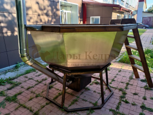 Банный чан из нержавеющей стали Ø-2000 на подставке с приварной печью с водяной рубашкой