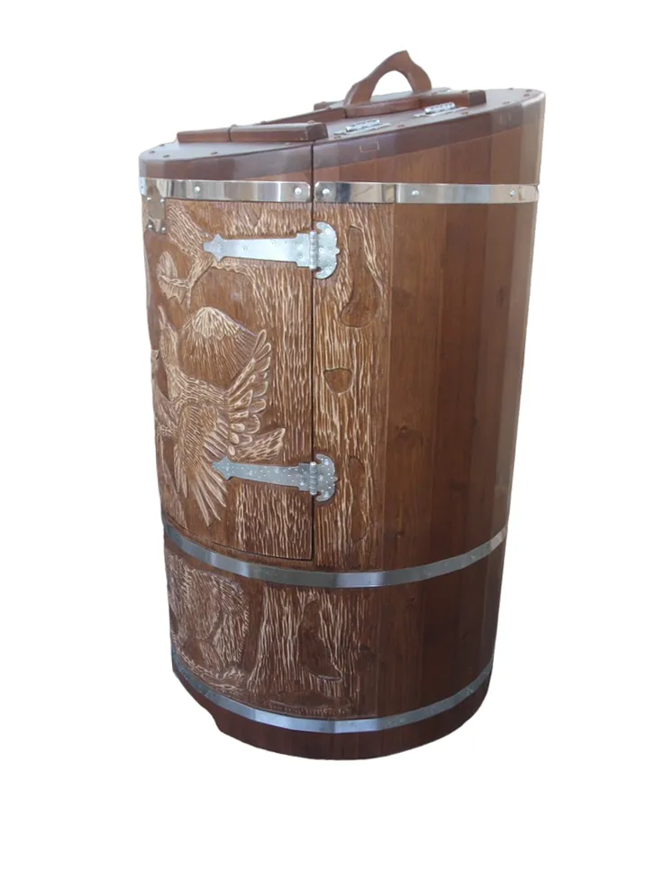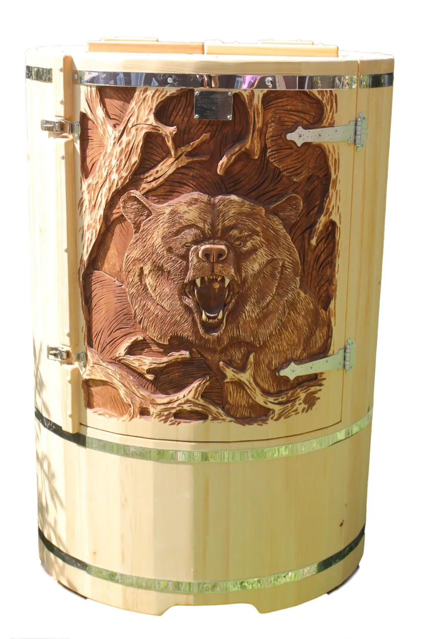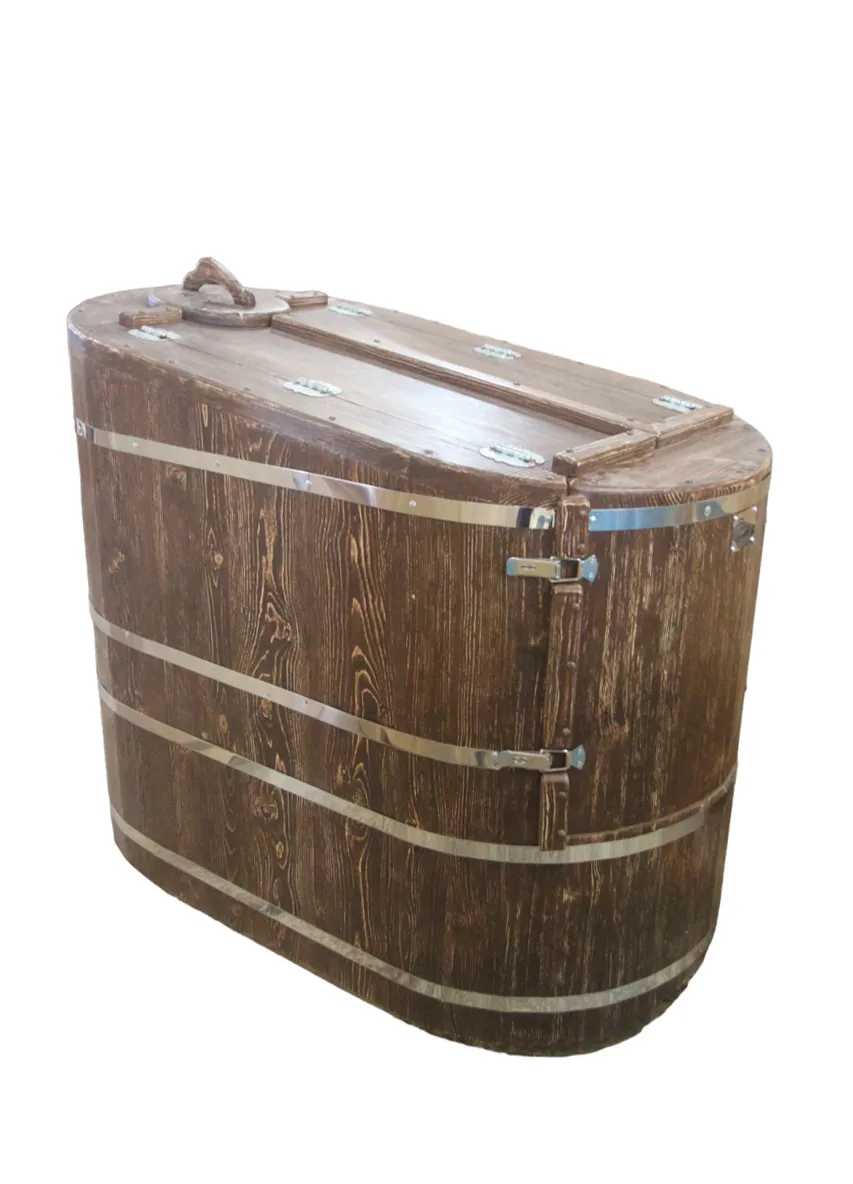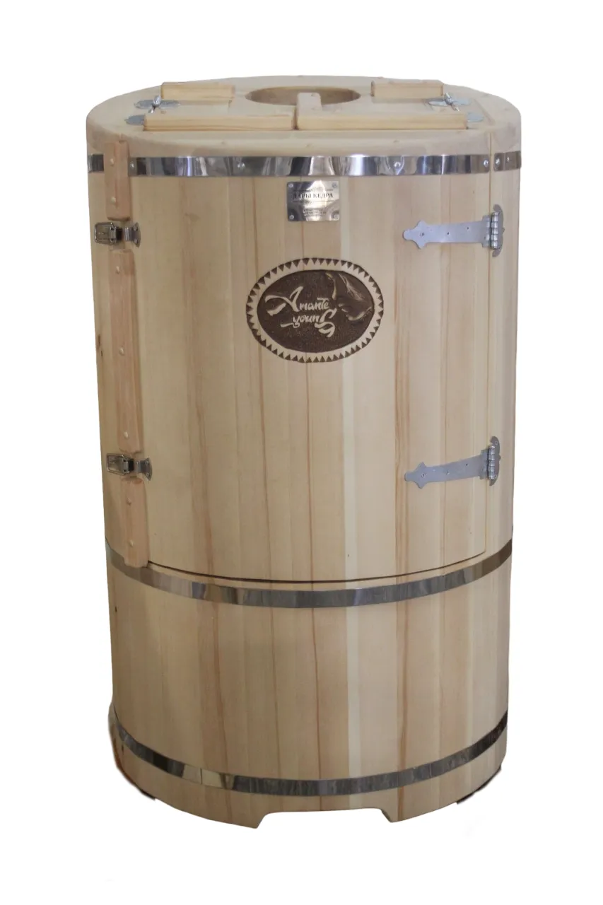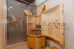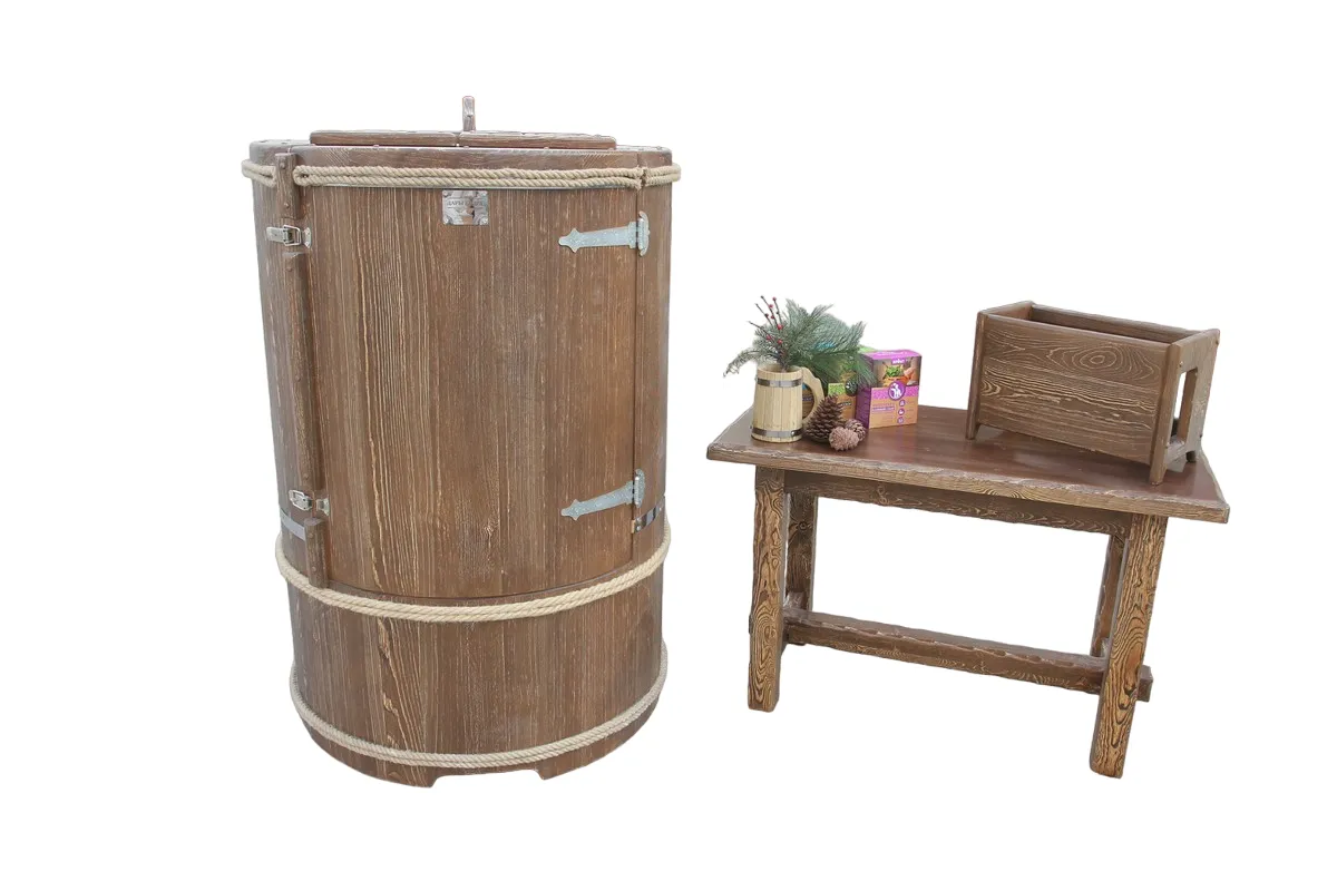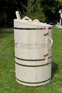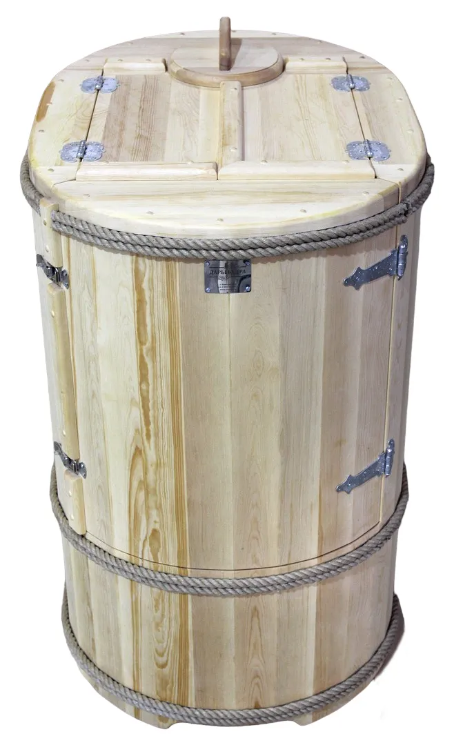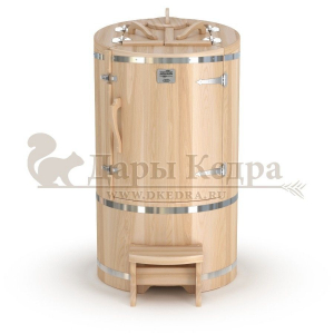 Готовый комплект - это полностью укомплектованный набор с фитобочкой для процедур парения. Круглая модель наиболее компактна и мобильна. Толщина стенок составляет 40-45 мм, что позволяет увеличить срок службы изделия. Бочка оборудована откидными створками, дверцей и отверстием для головы. Верхний скос делает положение головы более комфортным и улучшает обзор. Во время парения человек сидит внутри кедровой бочки, а голова находится снаружи. Благодаря этому исключается возможность перегрева. Подлокотники из кедра, встроенные ручки на створках и двери делают эксплуатацию более удобной.