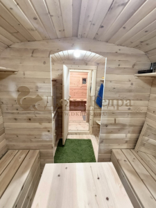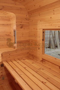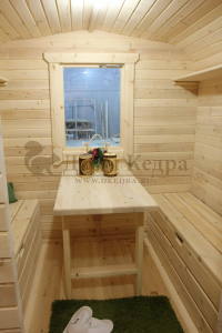 Размер окна варьируется от 120 см до 180 см в длину, ширина согласовывается индивидуально. Добавит света парному отделению, а также визуально расширит пространство.